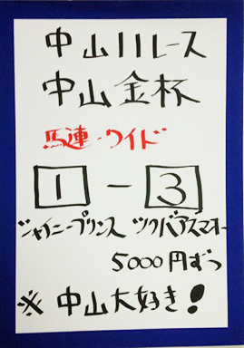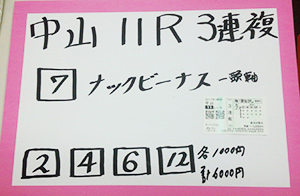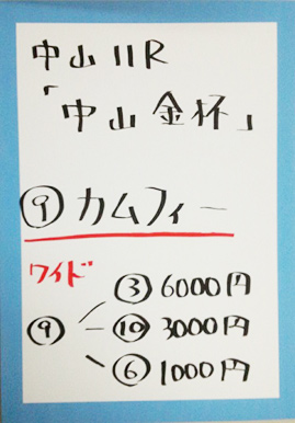 続いては、中山メインレースで馬券対決です。結果はこちら。