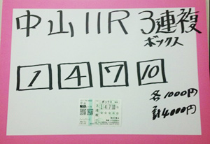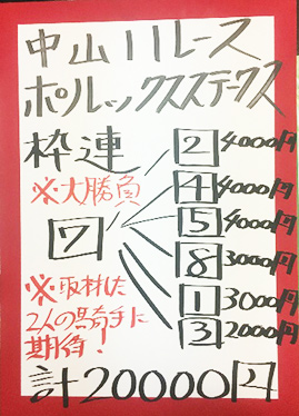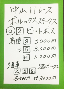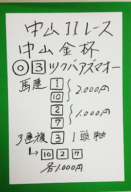 次は中山メインで馬券対決です。結果はこちら。