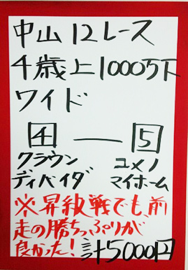 その言葉を受けてワイドの軸に指名し、的中させました。