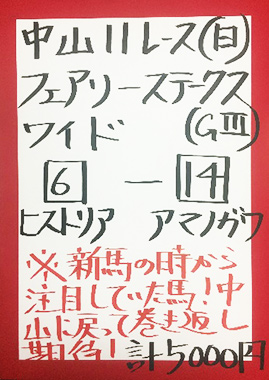 | 日曜中山11R フェアリーステークス【GⅢ】 | |