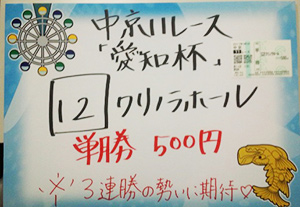 さあ、注目の牝馬重賞「愛知杯」で馬券対決です。