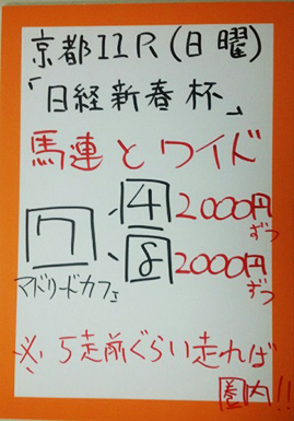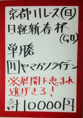 | 火曜京都11R 日経新春杯【GⅡ】 | |