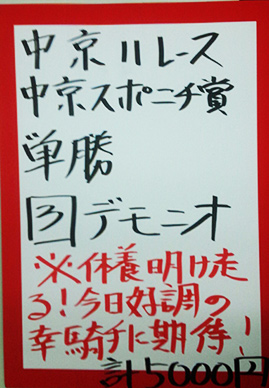 デキが戻ったと聞いて虎石さんは、自身の複勝一点勝負!