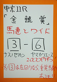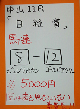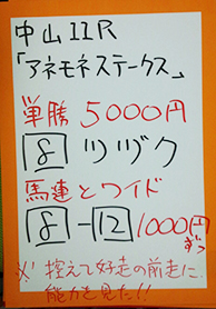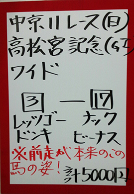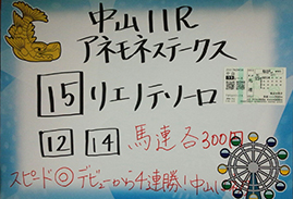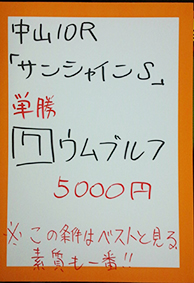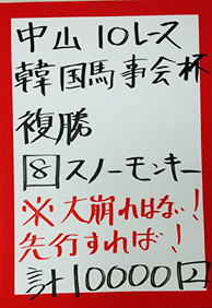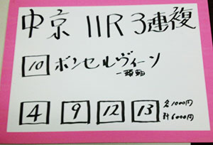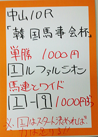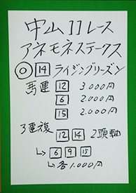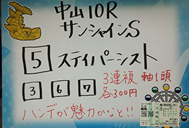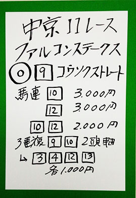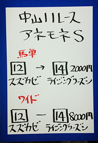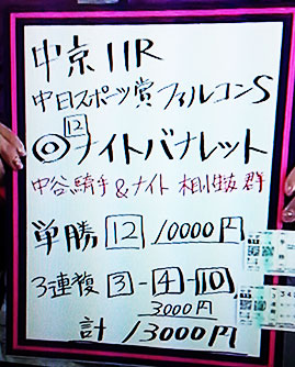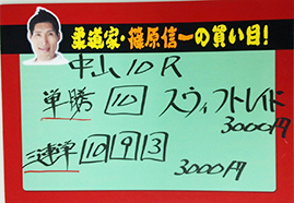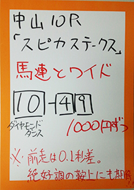 さっそく馬券対決です。まずは中山10Rの結果です。