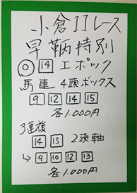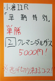 続いては小倉メインレースで馬券対決です。結果はこちら。