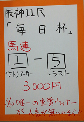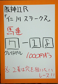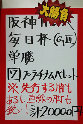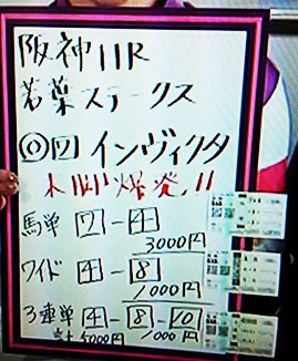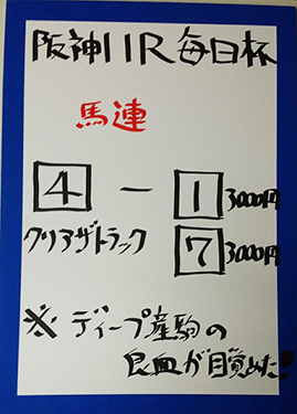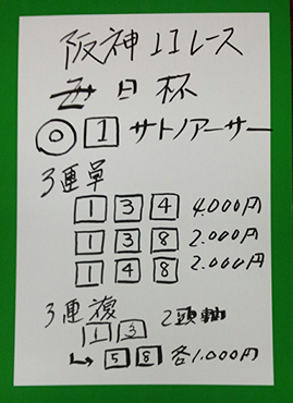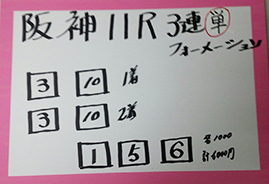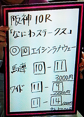 さっそく馬券対決です。まずは阪神10Rの結果です。