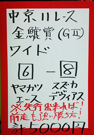 続いては中京メインレースで馬券対決です。結果はこちら。