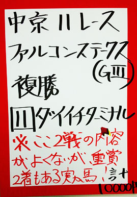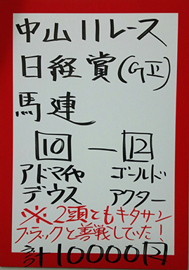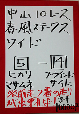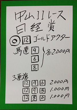 もう一方の重賞、「日経賞」で馬券対決です。結果はこちら。