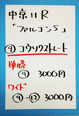それでは重賞「ファルコンステークス」で馬券対決です。結果はこちら。