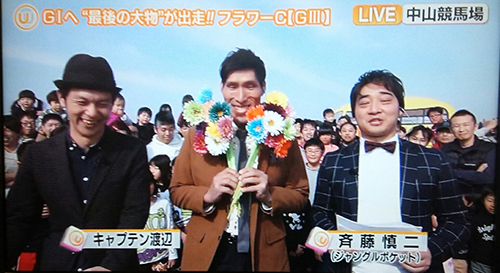 「フラワーカップ」にちなんで、お花に囲まれてのご登場です!