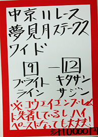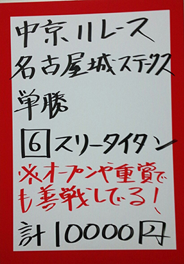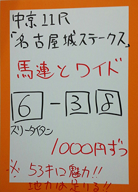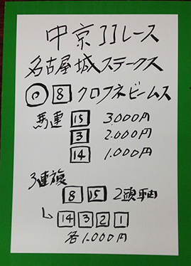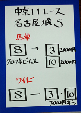 続いて中京メインの「名古屋城ステークス」で馬券対決です。結果はこちら。
