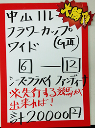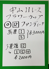 それでは注目の重賞「フラワーカップ」で馬券対決です。結果はこちら。