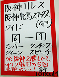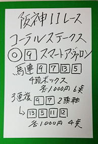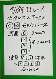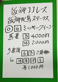 続いては阪神メインで馬券対決です。結果はこちら。