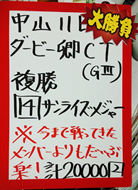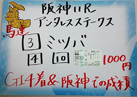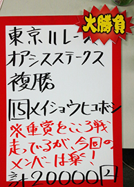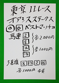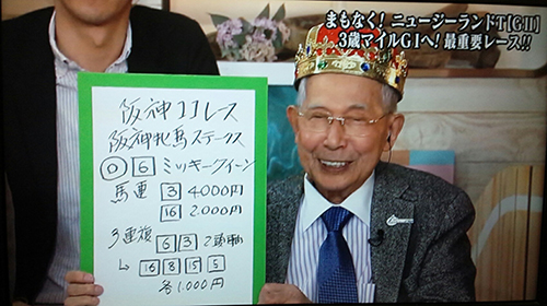 8番人気の馬に本命を打っての的中、さすがです!