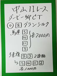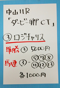 それでは注目の重賞、「ダ-ビー卿チャレンジトロフィー」で馬券対決です。結果はこちら。