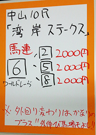 さあそれでは馬券対決です。まずは中山10Rの結果です。