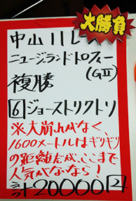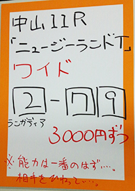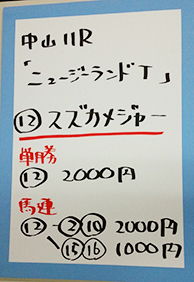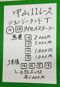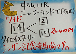 もう一方の重賞、「ニュージーランドトロフィー」で馬券対決です。結果はこちら。
