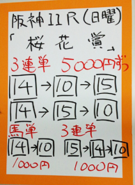 それでは、「桜花賞」で馬券対決です。
