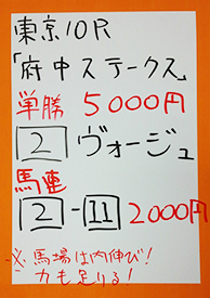 それでは東京10Rの馬券対決、結果です。