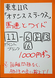 | ワイド 7.5倍 | 単勝 11.1倍 馬連20.7倍 |