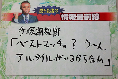 その手塚調教師から、アルタイルが絶好調と聞いていた虎石さんは、アルタイルを本命に推し、見事に的中となりました!情報最前線のコーナー、今後も注目です!!