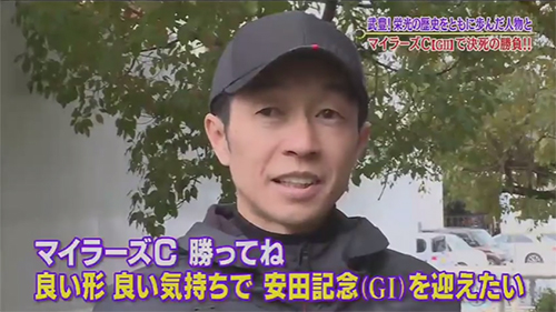 「マイラーズカップ」の特集では、④エアスピネルに騎乗する武豊騎手に直撃取材です。