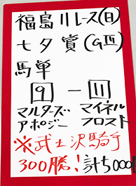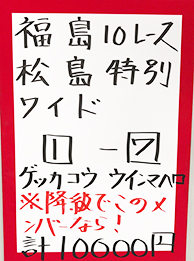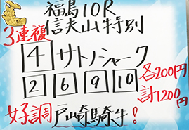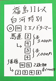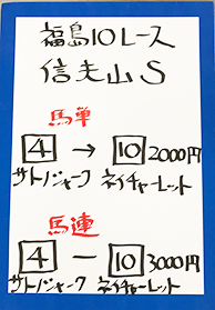 それではさっそく馬券対決に参りましょう。まずは福島10Rの結果です。