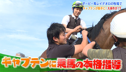 取材の最後に、キャプテンさんが乗馬にチャレンジ!