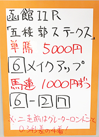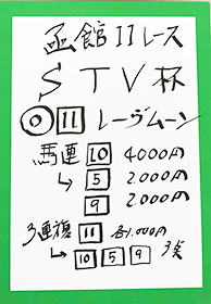 それでは函館メインレースで馬券対決です。結果はこちら。
