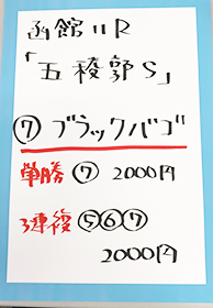 それでは、日曜日に行われた世代最初の重賞、「函館2歳ステークス」で馬券対決です