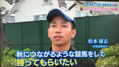 日曜日の重賞「函館記念」の特集では、①サトノアレスを担当する松本雄志持乗調教助手と、