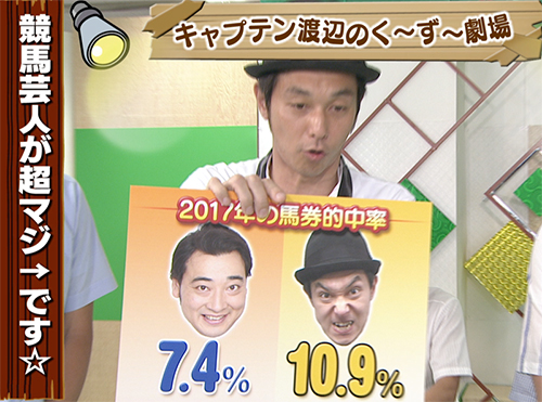 く~ず~劇場では、2017年の馬券的中率を披露するキャプテンさん。