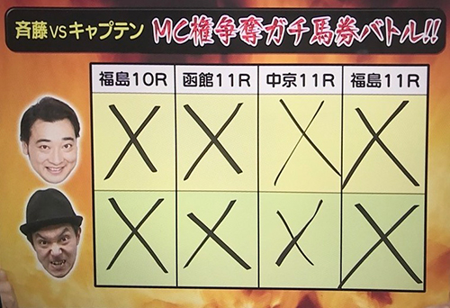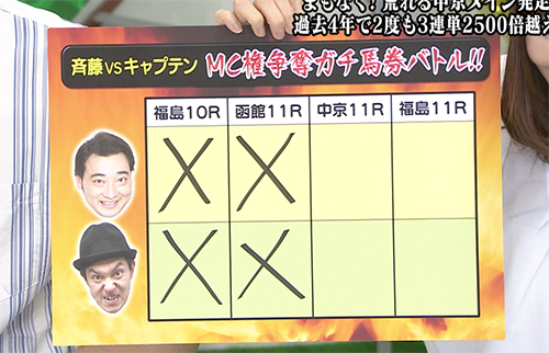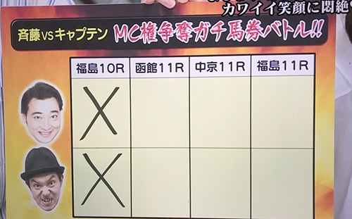 斉藤さんに対して、「的中率が高い方がMCになるべきだ!」と、下克上(?)を狙います。