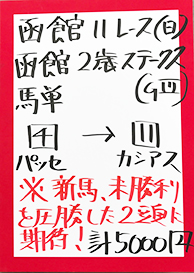 それでは、日曜日に行われた「函館記念」で馬券対決です