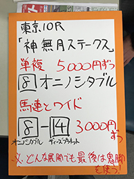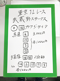 さあ、注目の重賞、「武蔵野ステークス」で馬券対決です。