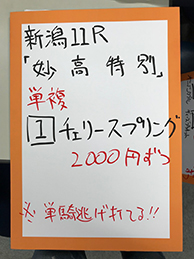 | 【結果】 1着(16) ハーツジュニア・3番人気 2着(12) サンキュー・15番人気 3着(1) キセキノツヅキ・4番人気 |