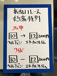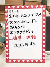 それでは、GⅢ「ファンタジーステークス」で馬券対決です。