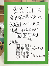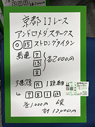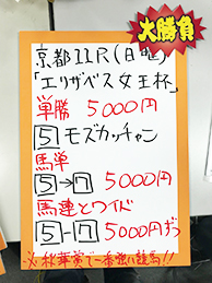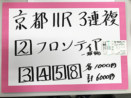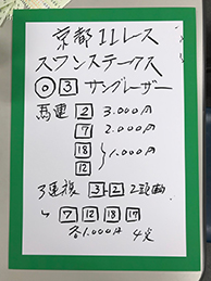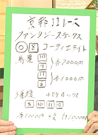続いては、京都メインレースで馬券対決です!結果はこちらです。