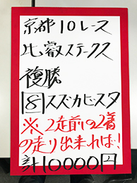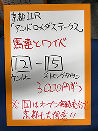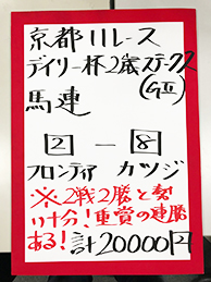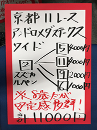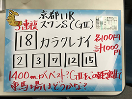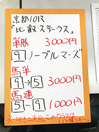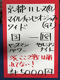 今回は、京都最終レースでも馬券対決を行います!結果はこちら。