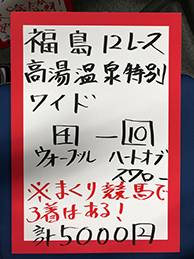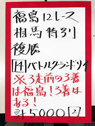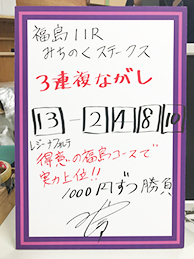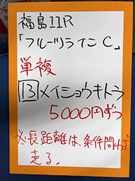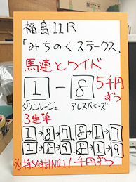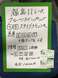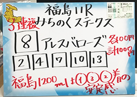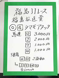 今回は、福島最終レースでも馬券対決を行います!結果はこちら。