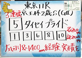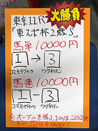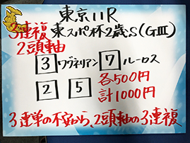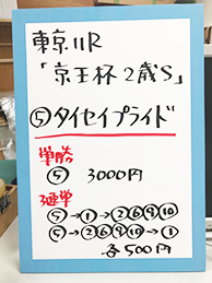 それでは、注目の重賞、「東京スポーツ杯2歳ステークス」で馬券対決です。