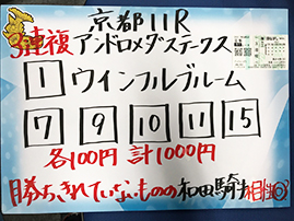 まずは、この秋絶好調のキャプテンさんが単勝と複勝のW的中!払戻は10万超!