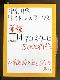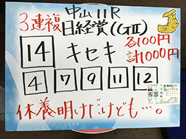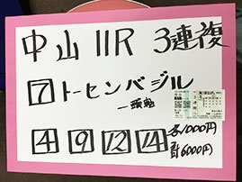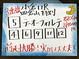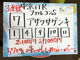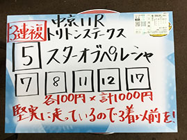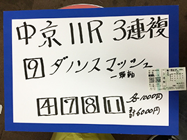 3連複の神様、吉沢さんが3連複を的中です!おめでとうございます。