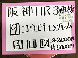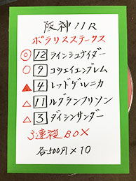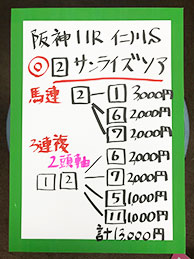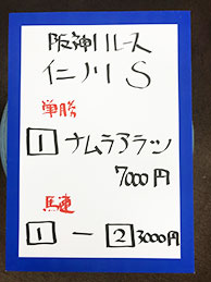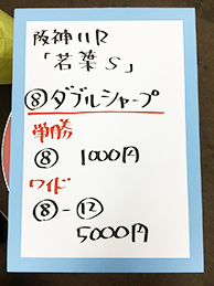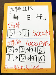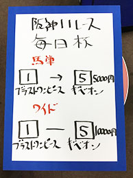 続いては、阪神メインで馬券対決です!結果はこちら。