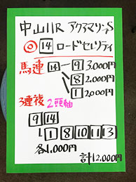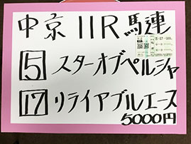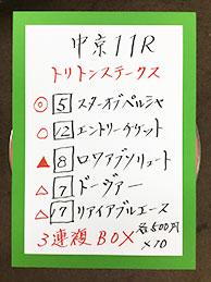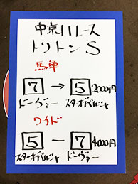 一方のキャプテンさん、10番人気の⑦キングハートを本命にするも、痛恨のヒモ抜け。