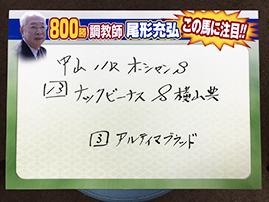 ここからは尾形先生にも狙い馬を発表して頂きました。気になる結果はこちらです。