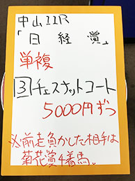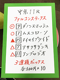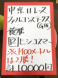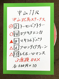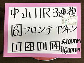 続いては、中山メインで馬券対決です!結果はこちら。