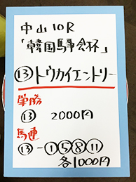 斉藤さんが複勝を的中です。おめでとうございます!