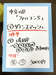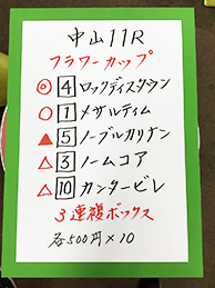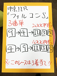 続いては、GⅢ「フラワーカップ」で馬券対決です!結果はこちら。