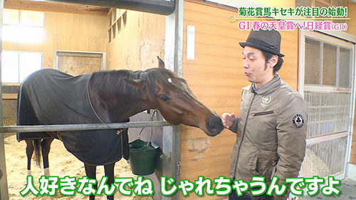 人が好きという辻野調教助手の言葉通り、終始キャプテンさんにじゃれていたキセキ。